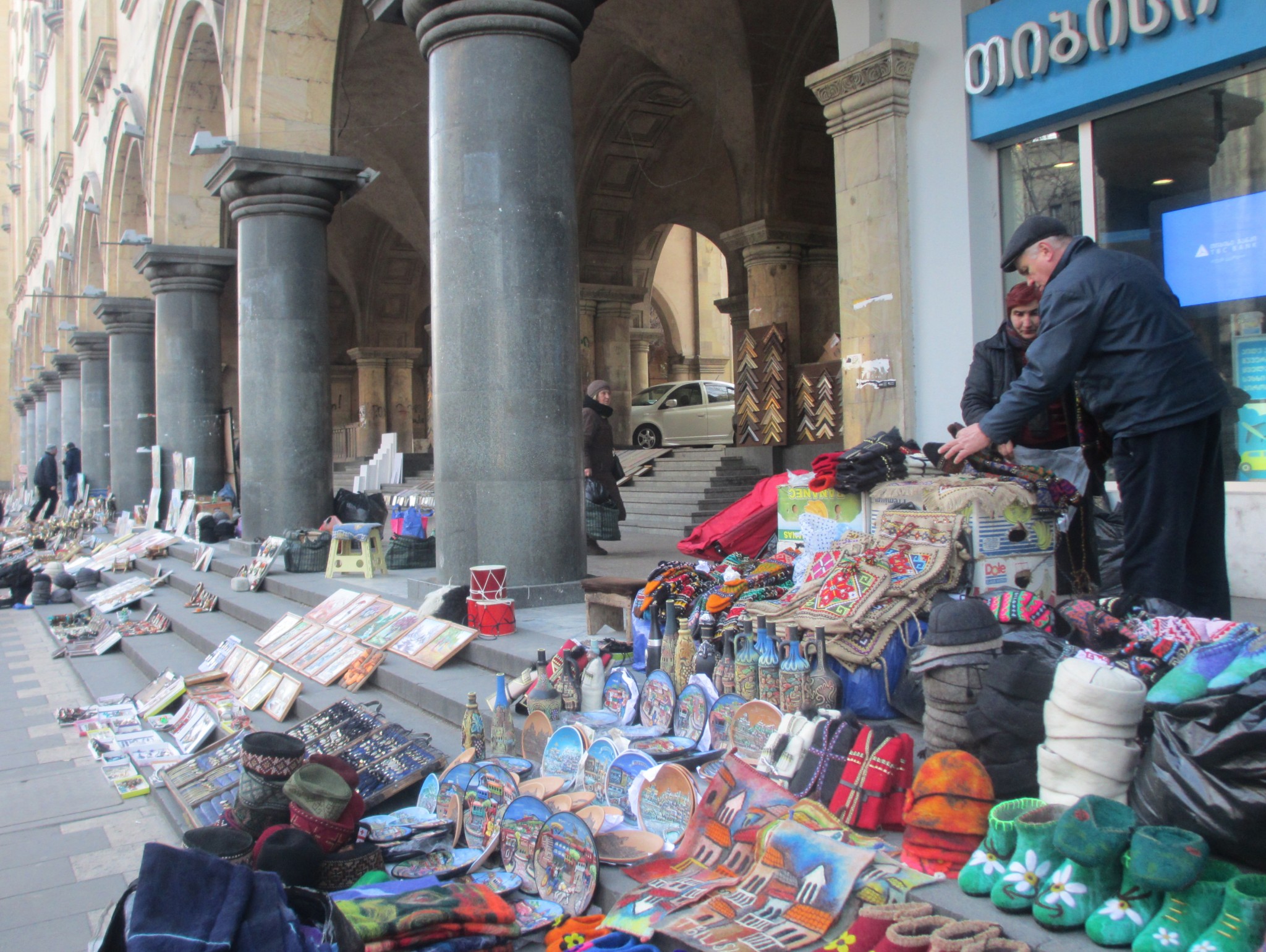 Торговля сувенирами у здания Академии наук на проспекте Руставели