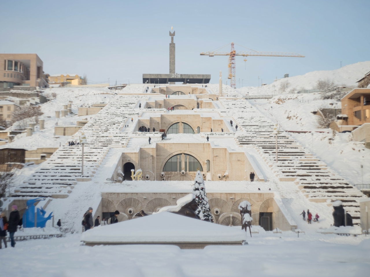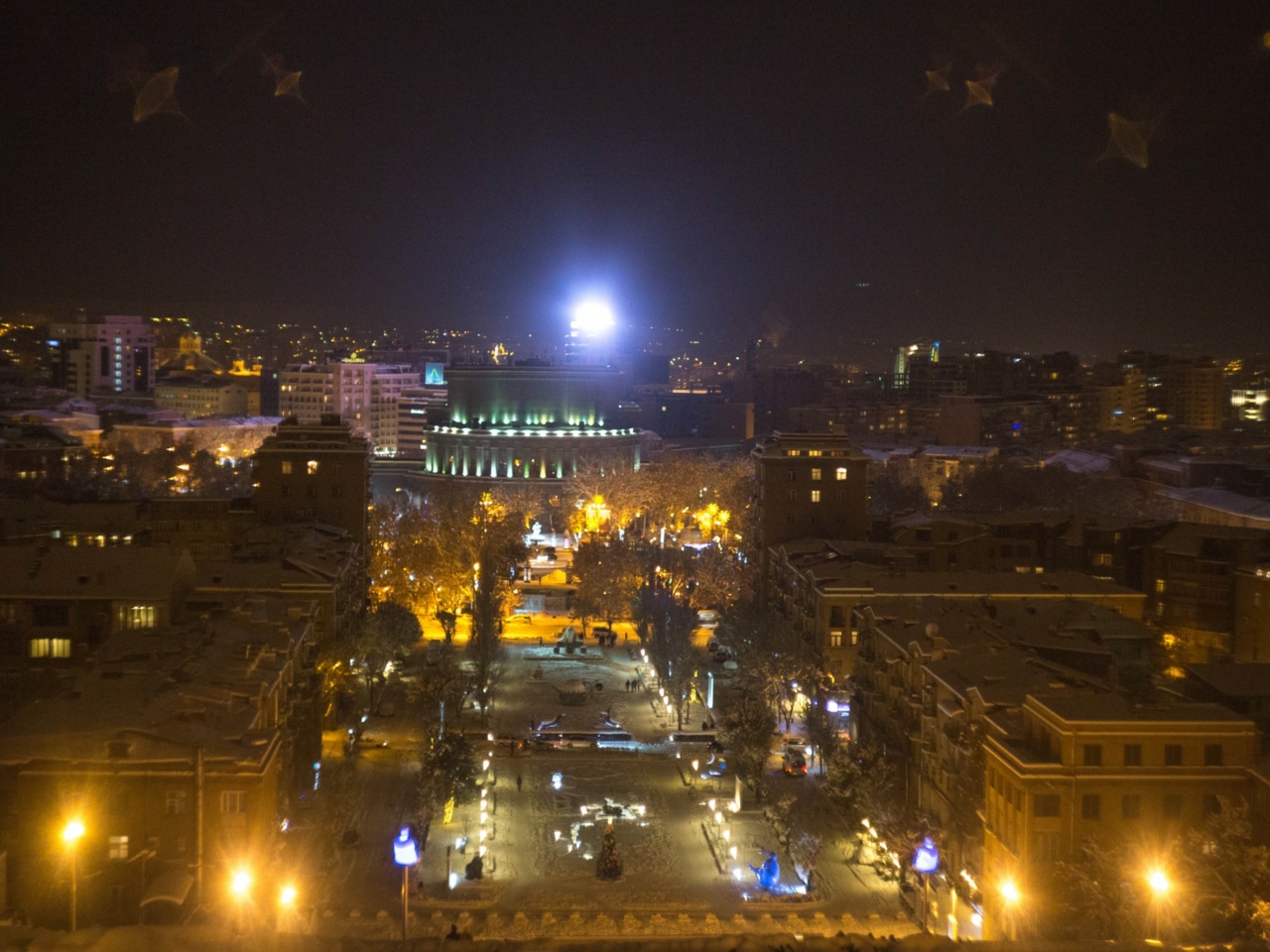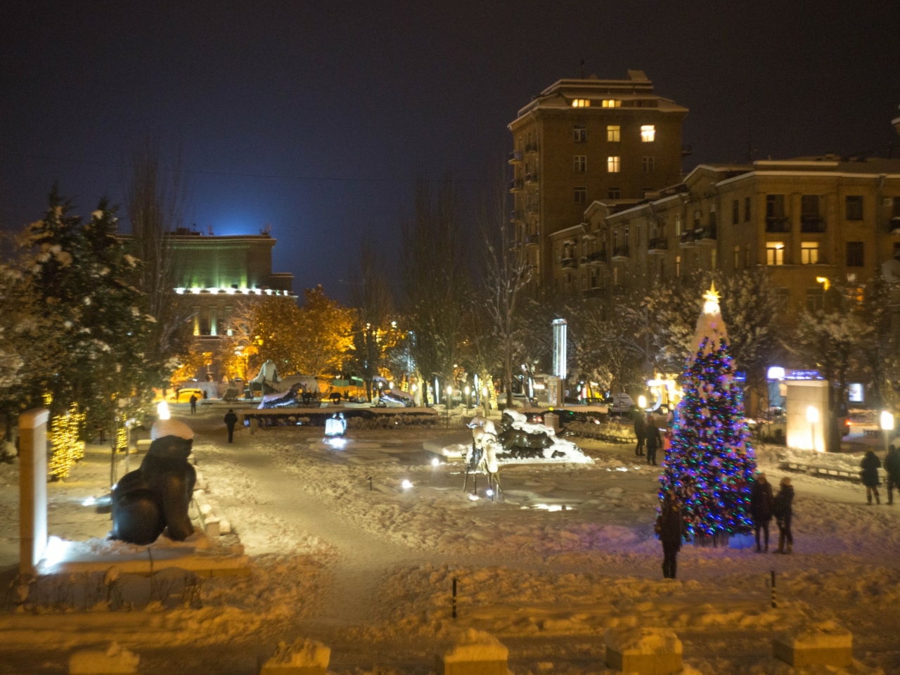 Когда мы прилетели в Ереван вечером 1 января, город утопал в снегу. В снежной каше буксовали традиционные армянские белые «Нивы» с тонировкой, а на центральном проспекте – Меспропа Маштоца – величественными белыми фигурами стояли заснеженные раскидистые платаны, так и не облетевшие осенью. Очень странное зрелище – покрытые листьями деревья в антураже рождественской сказки. Не сразу понимаешь, что здесь не так.