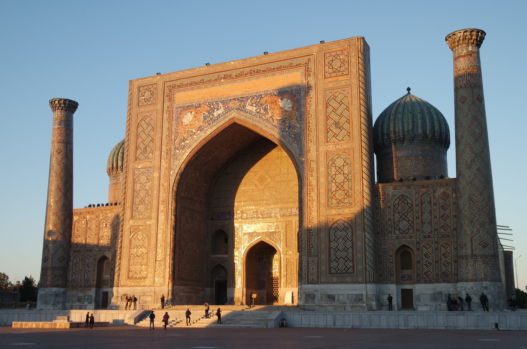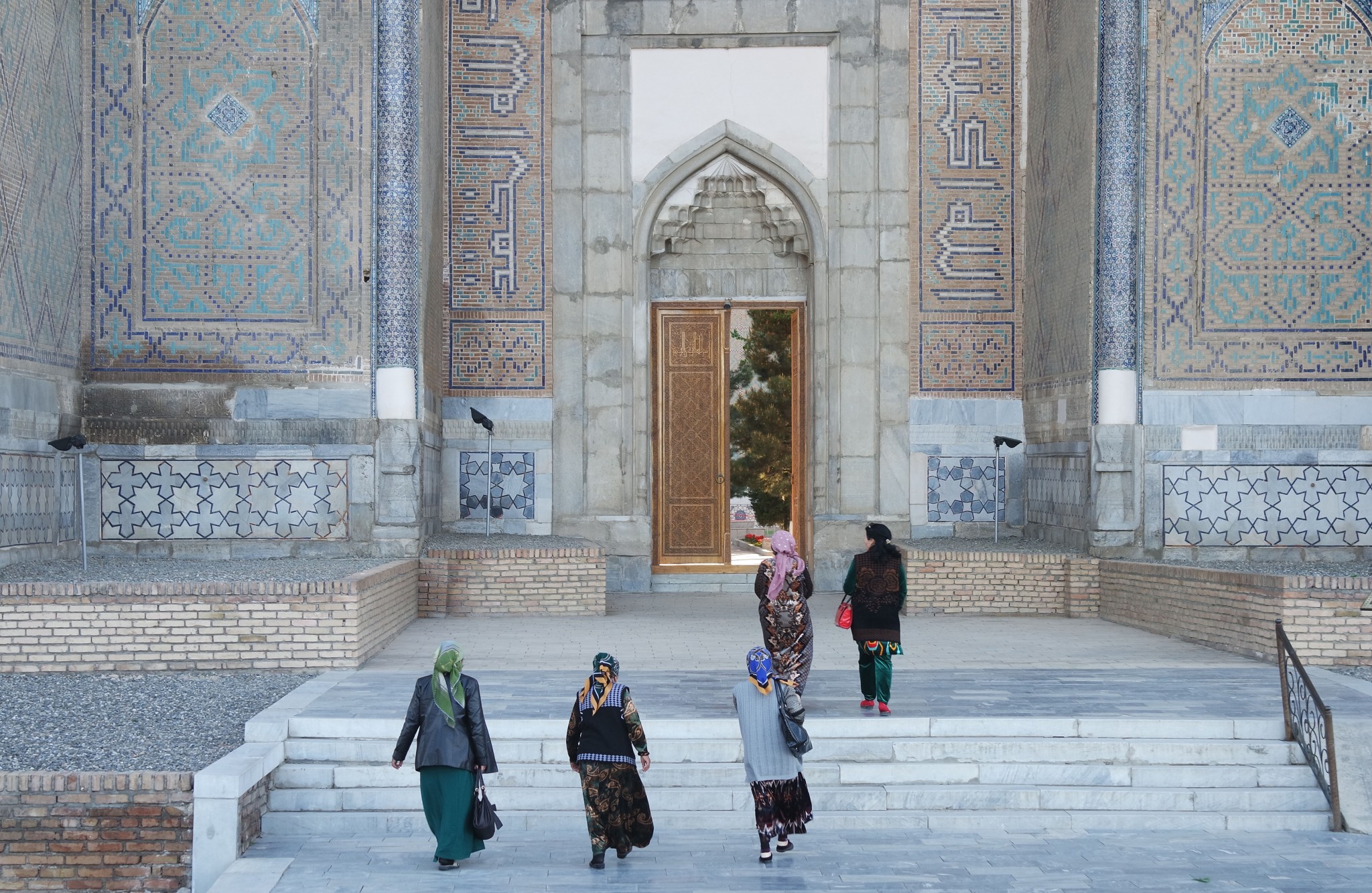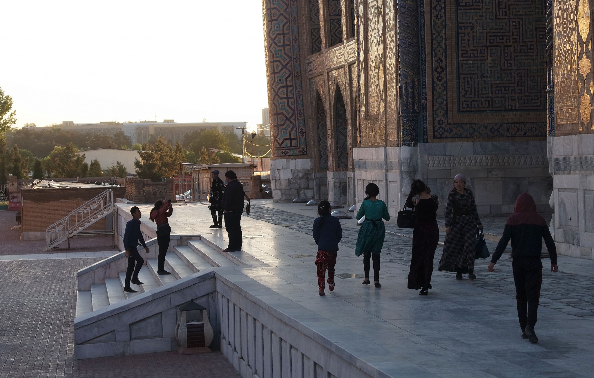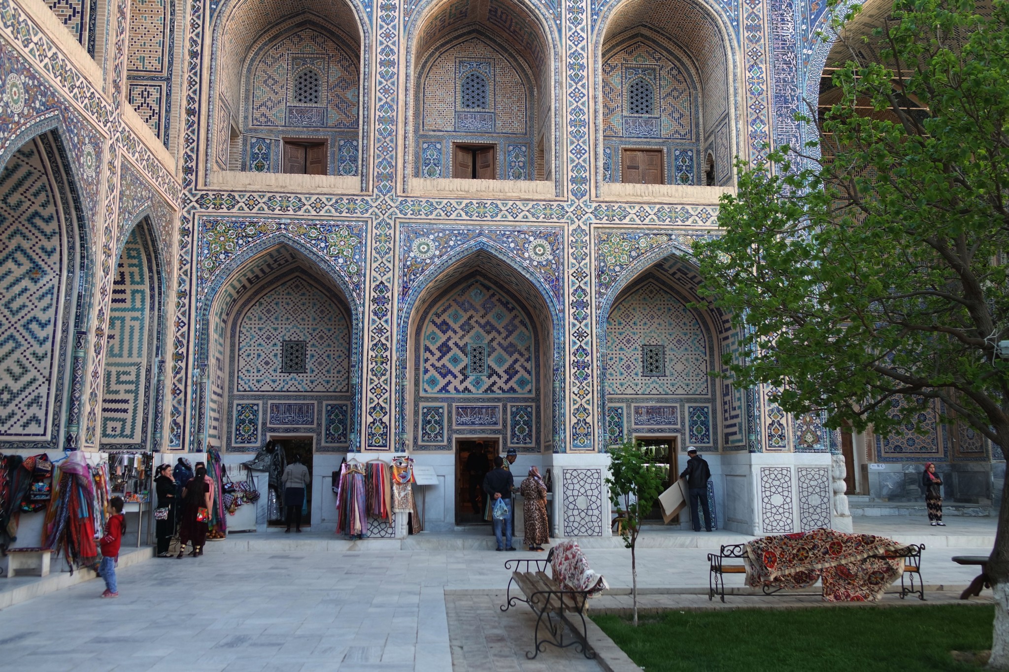 Вокруг, на стенах и в арках буйство узбекского орнамента, мозайки и майолики. То, за чем туристы едут в Самарканд в частности и Узбекистан вообще.