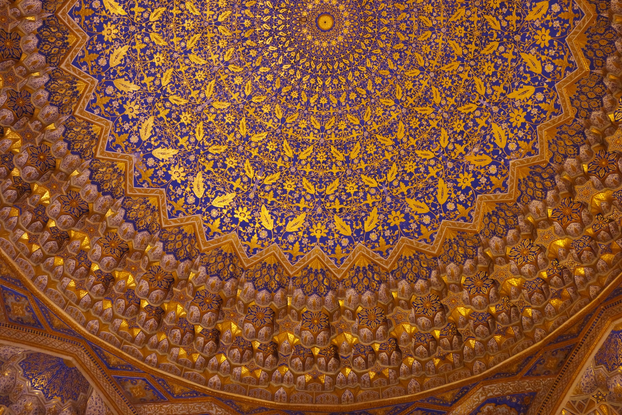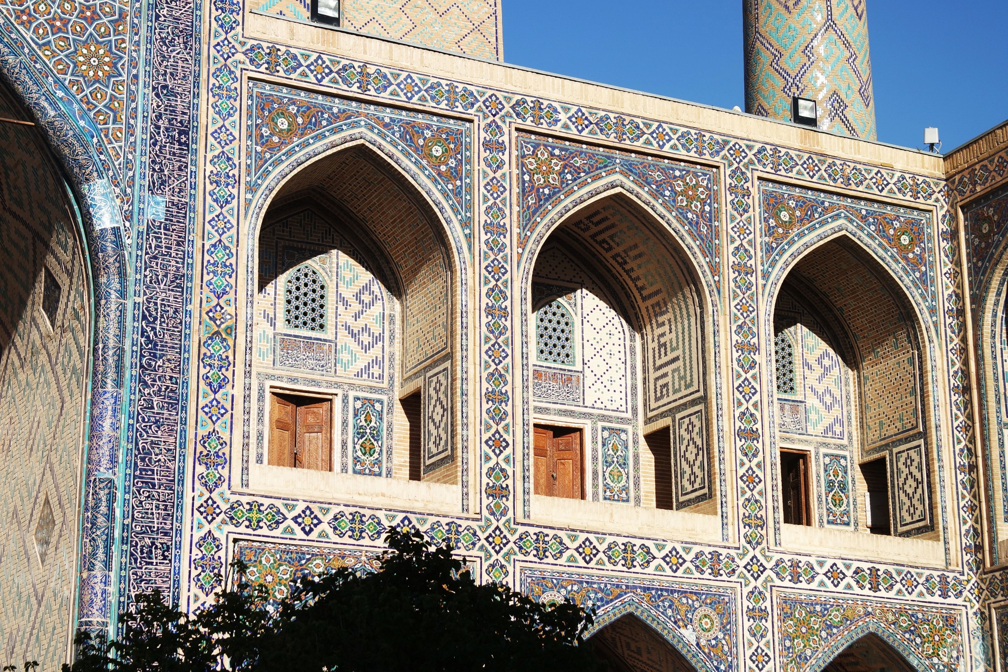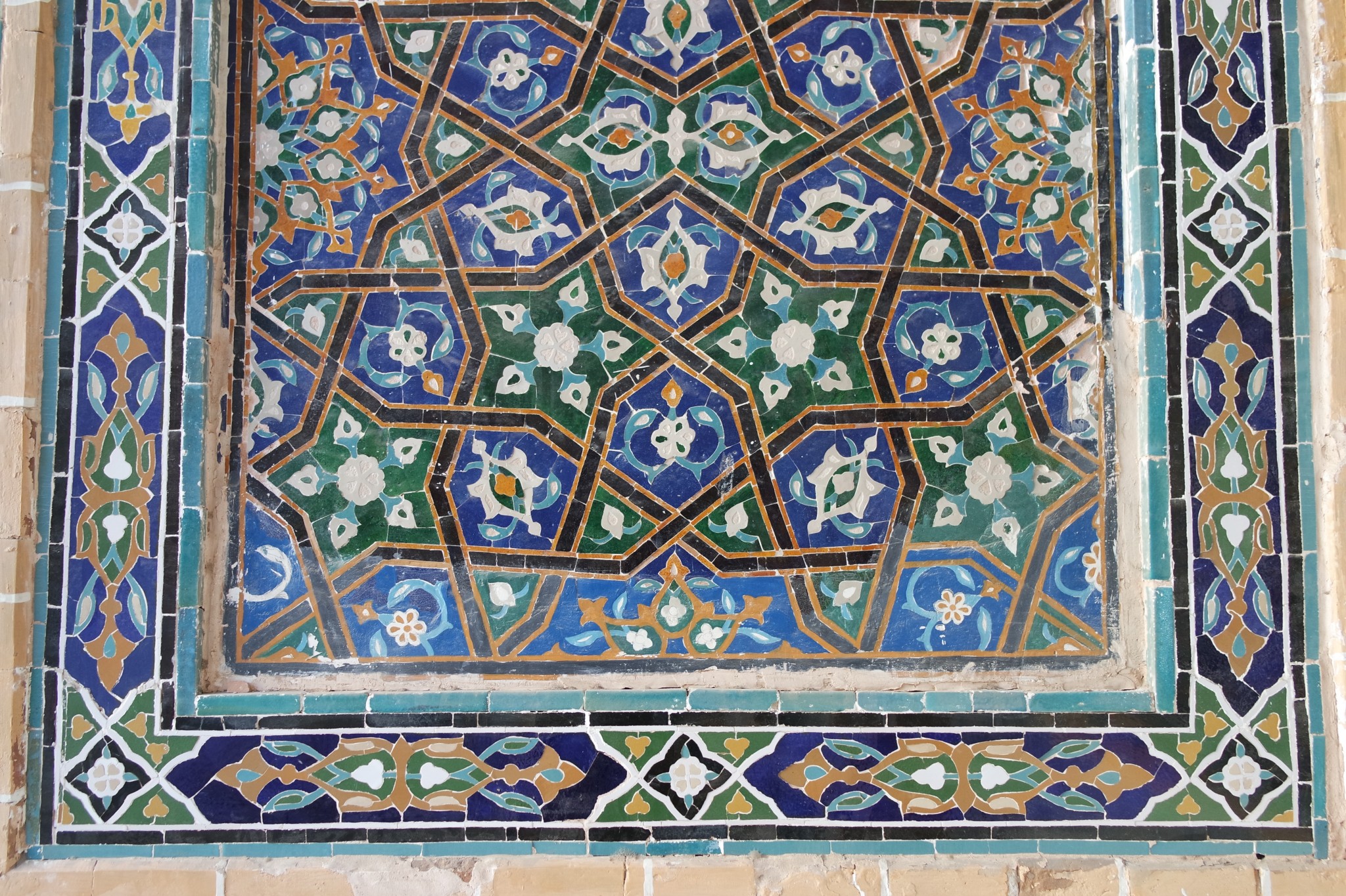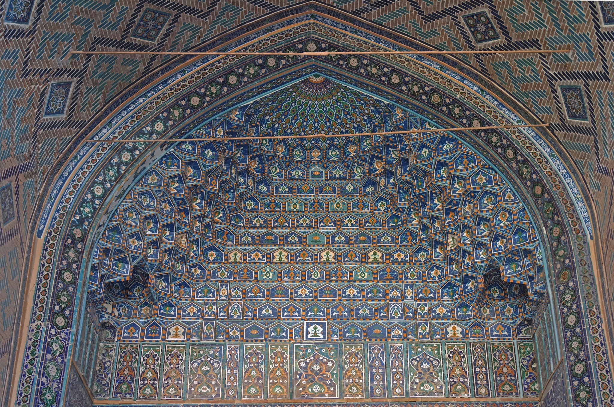Вокруг, на стенах и в арках буйство узбекского орнамента, мозайки и майолики. То, за чем туристы едут в Самарканд в частности и Узбекистан вообще.