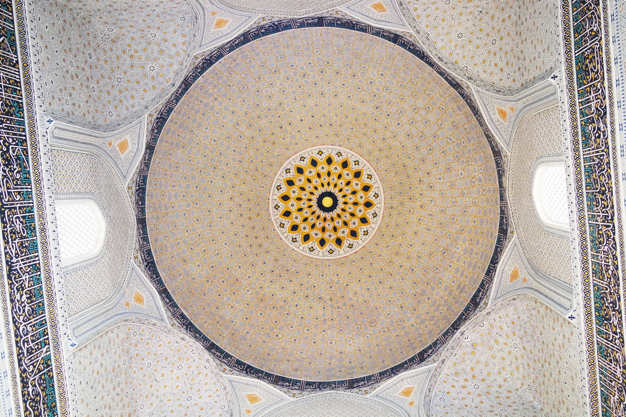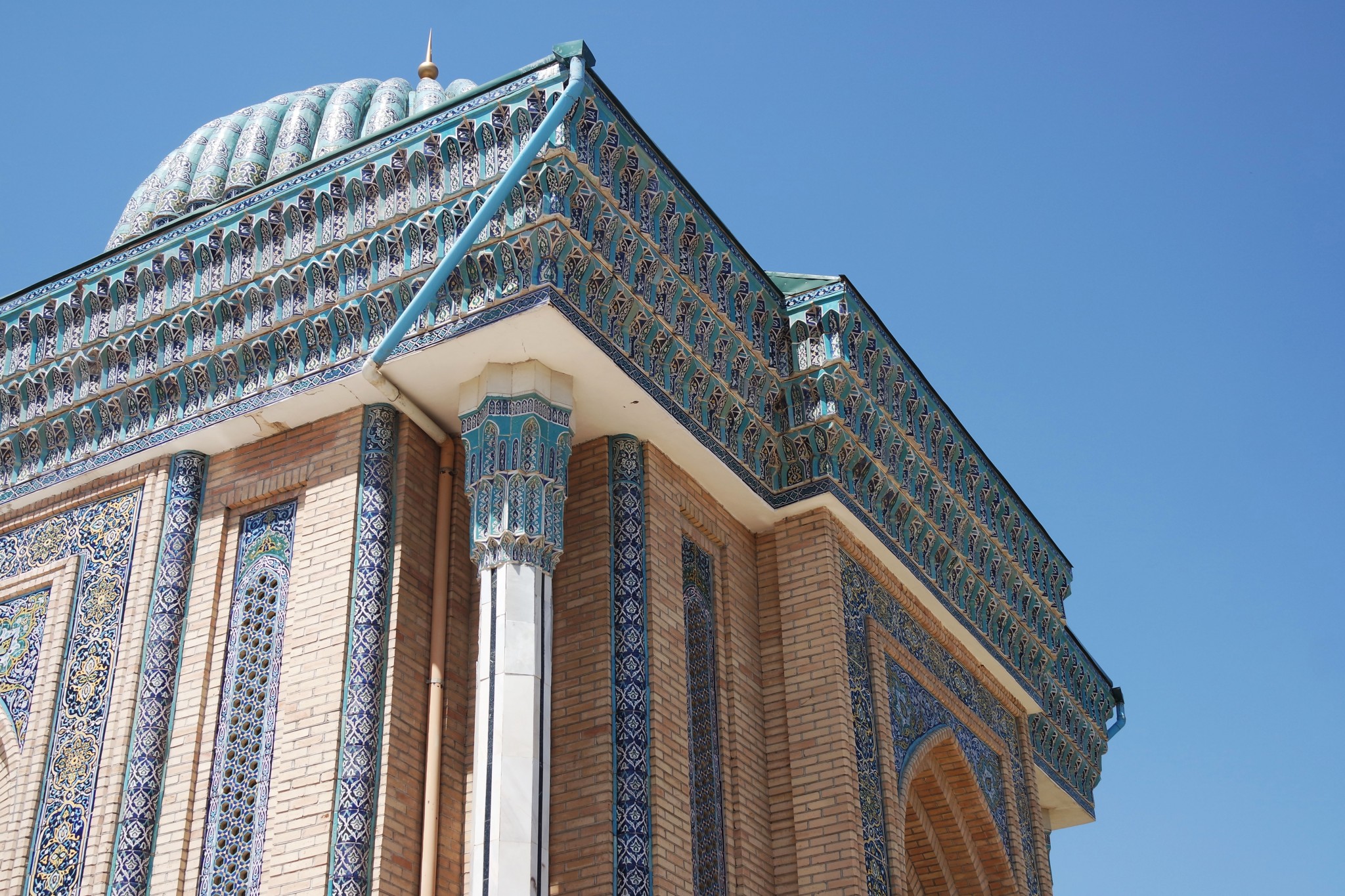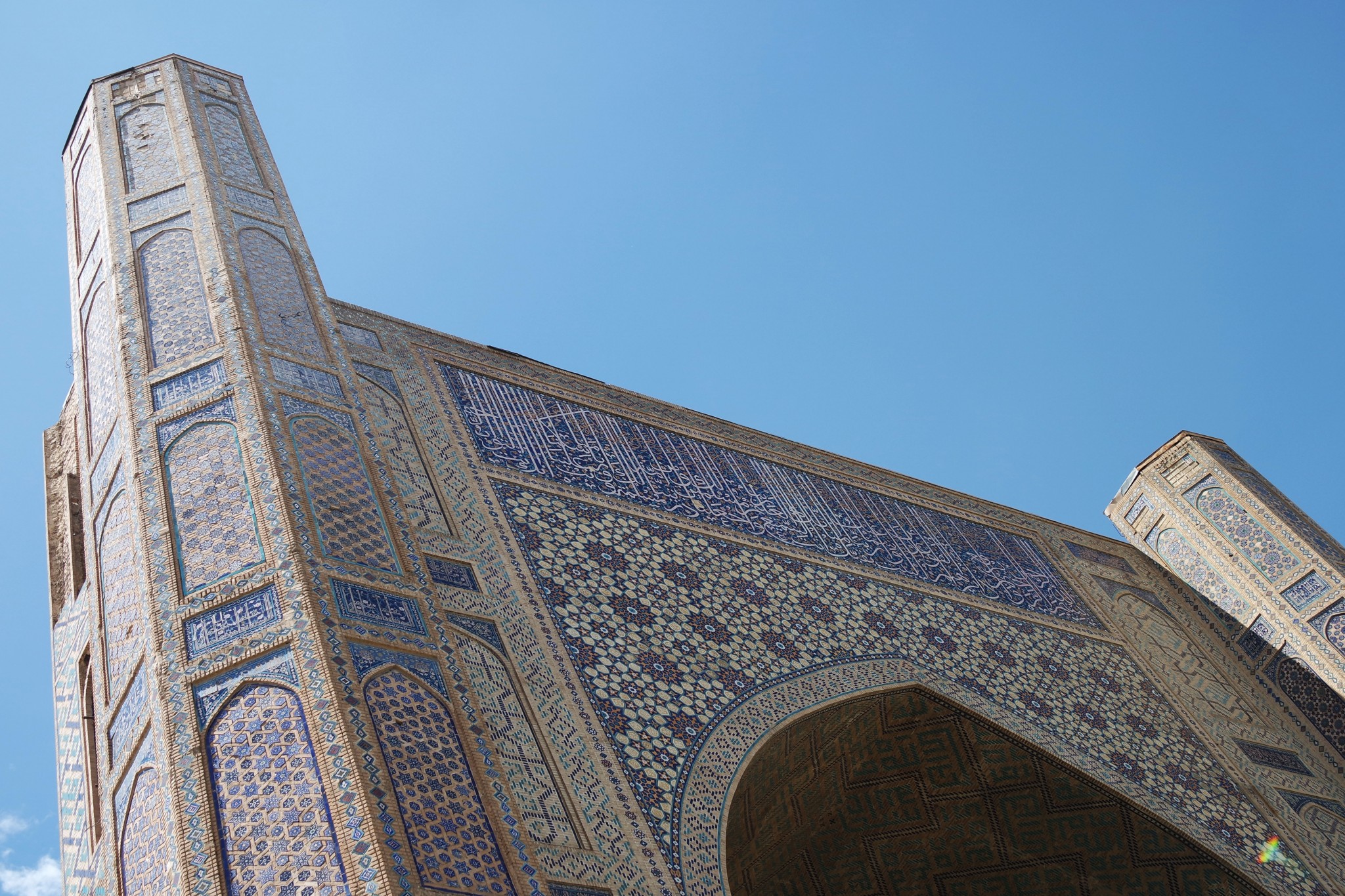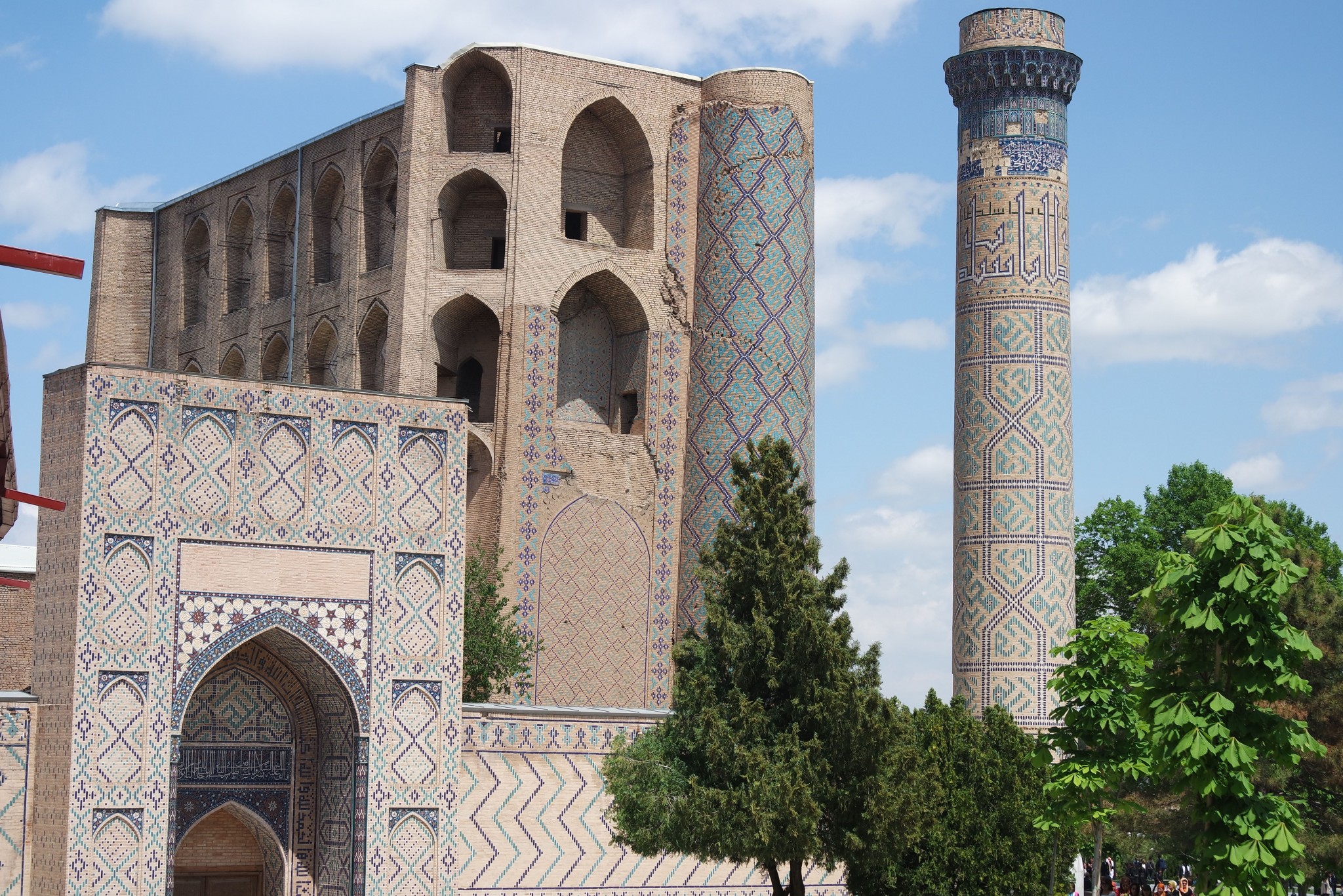 Вокруг, на стенах и в арках буйство узбекского орнамента, мозайки и майолики. То, за чем туристы едут в Самарканд в частности и Узбекистан вообще.