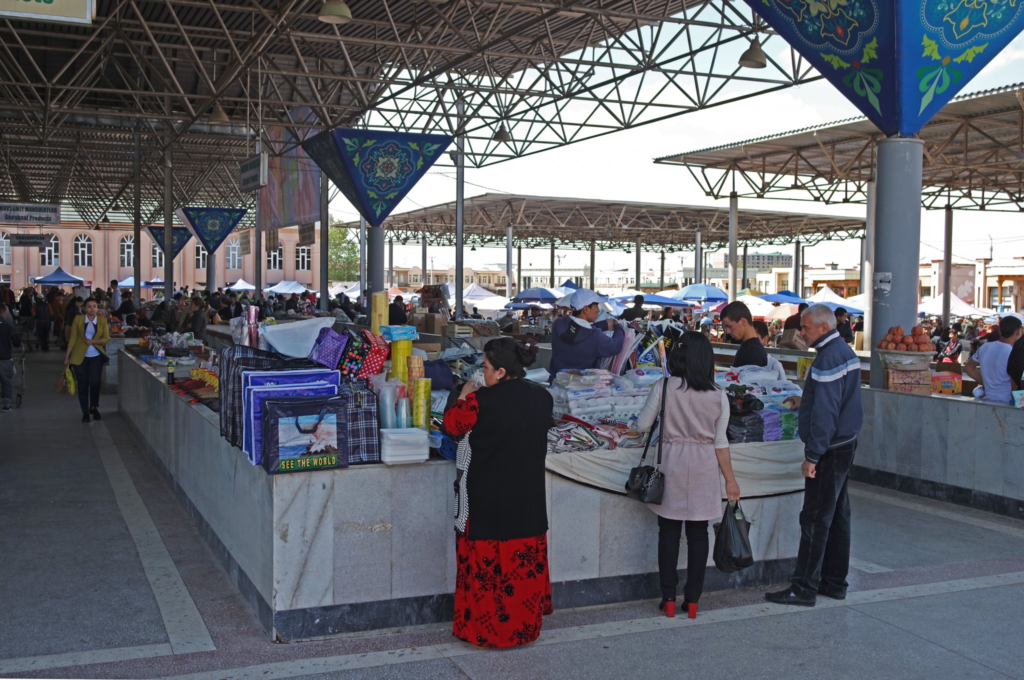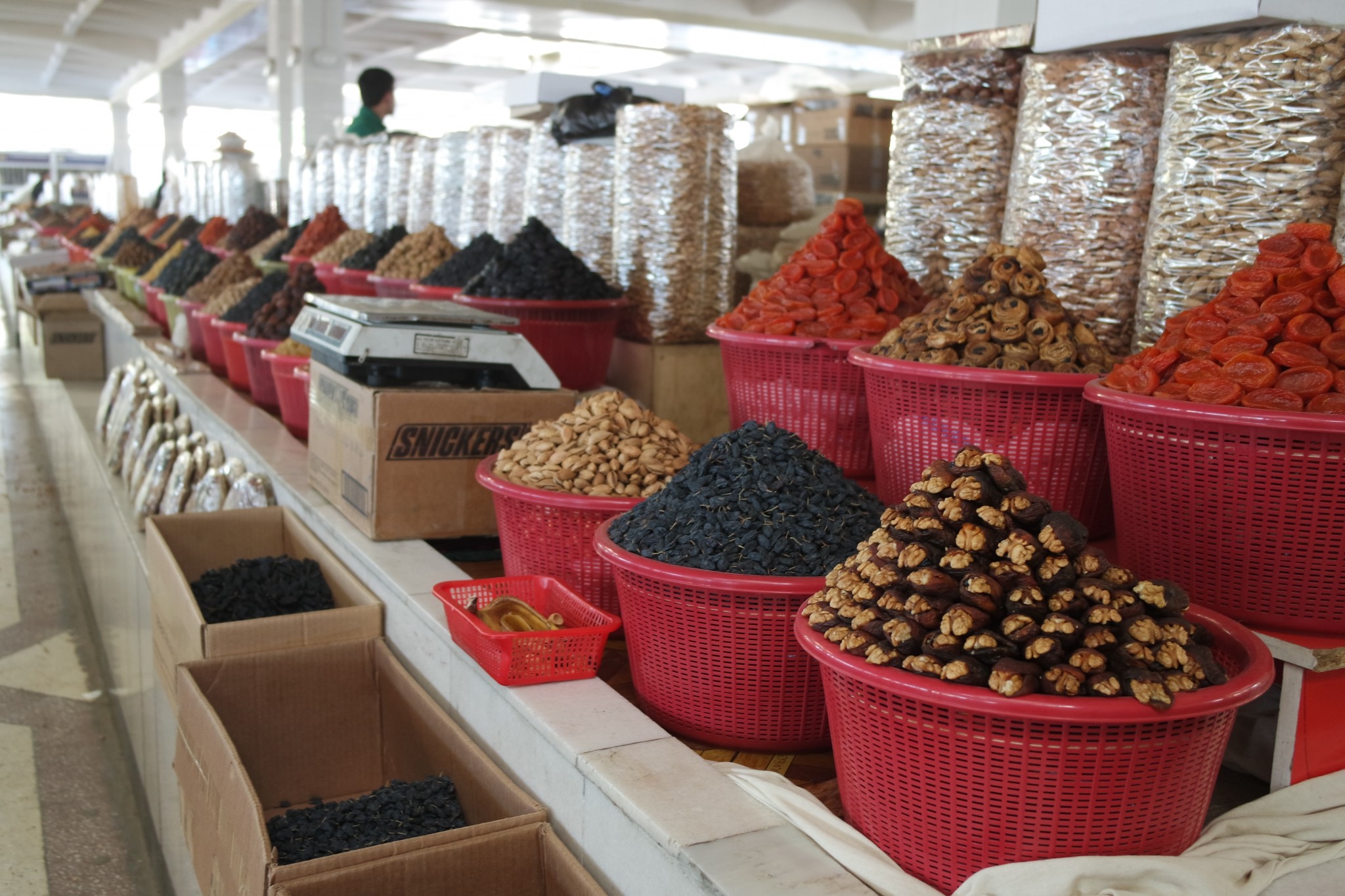 Прямо за центральной мечетью Самарканда – центральный базар города. На Сиабском рынке вас вряд ли когда-нибудь обсчитают, но вполне вероятно попытаются всучить вместо сушеного королька финики, а вместо чищенного миндаля соленые абрикосовые косточки. И все это искренне и от чистого сердца, брат.