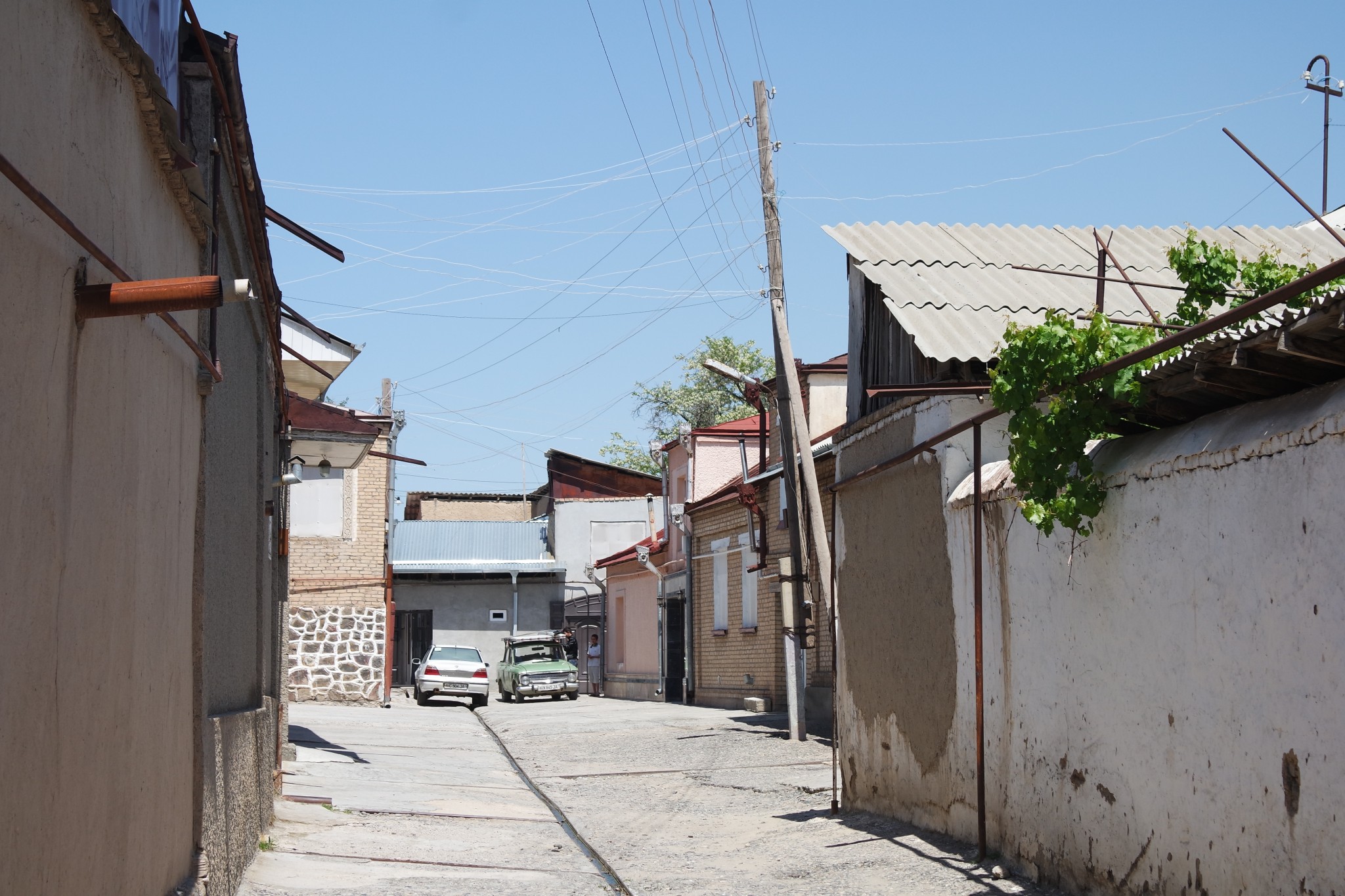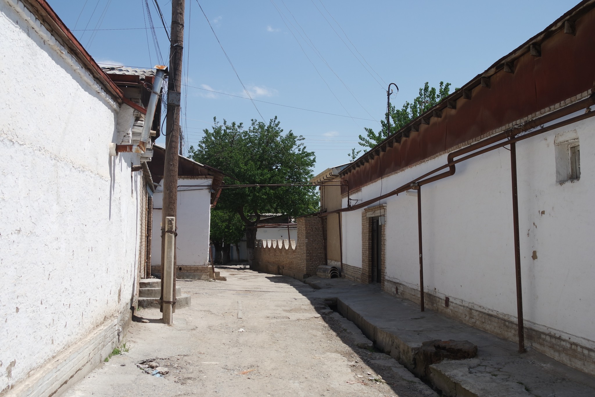 Улицы Старого города затягивают в свои лабиринты. Они обязательно снабжены канавами, часто прямо по средине дороги, а вдоль стен всегда тянутся трубы. Иногда среди одинаковых белесых малоэтажных хибар во двориках можно наткнуться на чудеса узбекской архитектуры.