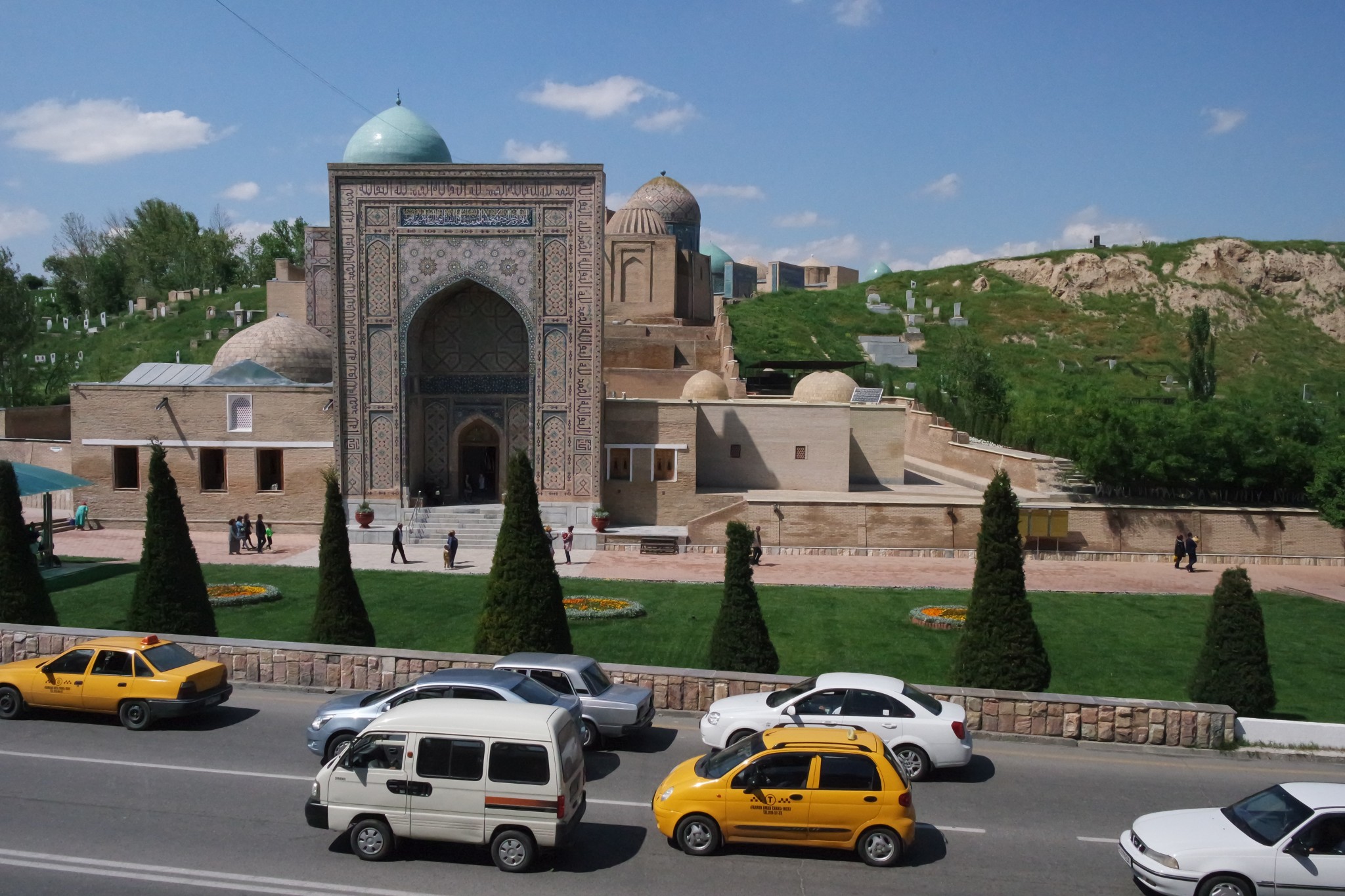 За базаром раскинулись холмы огромного древнего городища Афросиаб. Комплекс мавзолеев Шахи Зинда, расположенный в его окраине, можно назвать свидетелем почти 25-вековой (!) истории города.
