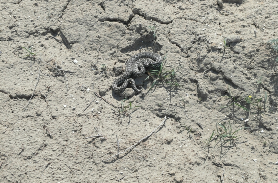 Бывает, едешь, и вдруг оказывается, что ты уже в 10-ти км от основной дороги. Бывает, одна дорога совсем разобьется – тогда ее бросают и ездят по другой, параллельной. Вообще степь позволяет ехать где угодно. Правда, лучше сильно не разгоняться – можно не заметить, как твою дорогу пересекает другая, и легко влететь в поперечную колею. У нас быстро распределились обязанности – водитель поддерживает максимально высокую скорость (40-60 км/ч), еще один человек смотрит за поперечными колеями, а третий следит за тем, как бы не раздавить черепашку – там их немало, среднеазиатских черепах. А еще в степи водятся змеи. Повсюду есть верблюды (они, как правило, домашние, но свободно пасутся по степи). И раз в 50-100 километров встречается аул домов из восьми.