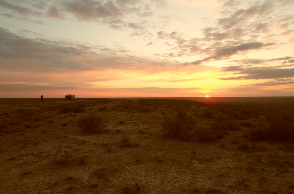 Насчет ночевок – все как и в нашей средней полосе, только воду приходится возить с собой. У нас всегда был запас – для умывания, для готовки, для питья. Еду возили тоже с собой. Иллюзий насчет того, что пустыня – это всегда жарко, у нас не было. Мы знали, что это зачастую даже холодно. Да и та весна в Казахстане выдалась прохладной. Выходя ночью из машины, приходилось надевать на себя все, что только возможно.
