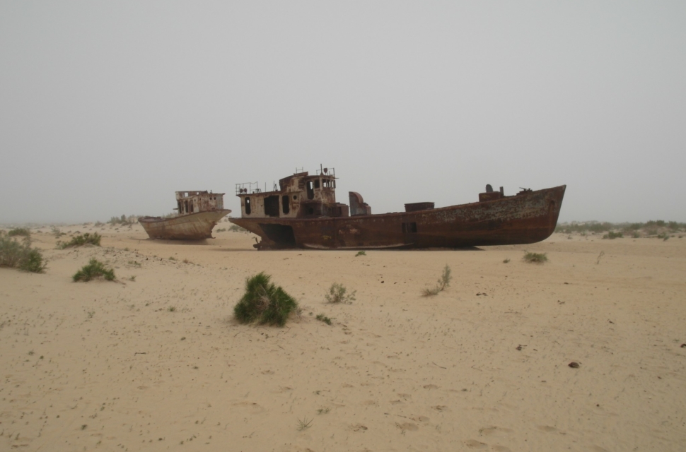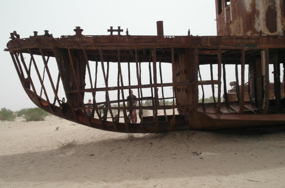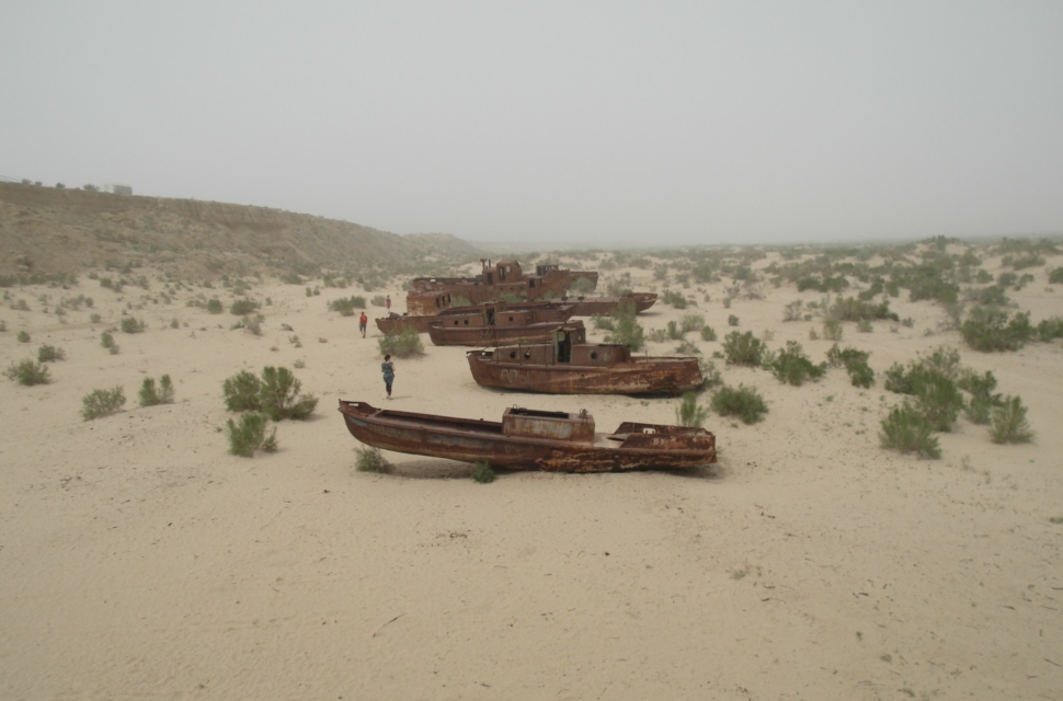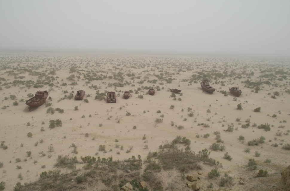 Пересохшее Аральское море – довольно депрессивное место. На сухом дне стоят газодобывающие вышки. С обрыва видно, как соляные смерчи гуляют по местности. Это очень вредно для человека, местные сильно страдают от песчаных бурь. Все удобрения, которые в советское время использовали для выращивания хлопка, смывались в итоге в Арал. Раньше спасала влажность.Теперь вместе с солью в кристализованном виде все это летает в воздухе.