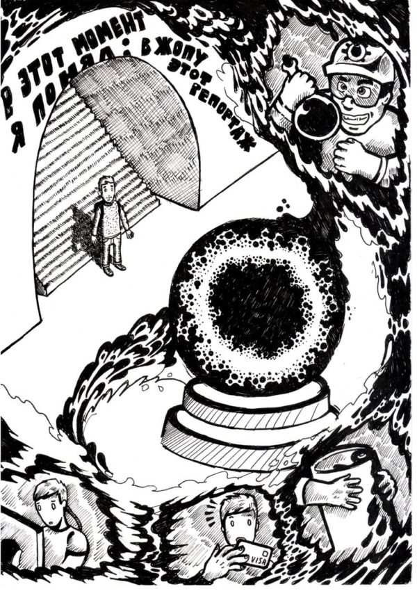 – Мне приходится брать много разной работы, чтобы прокормить себя и наше издательство, Space Cow Comix. Я занимаюсь SMM, пишу тексты, провожу воркшопы. Иногда мне дают заказы на комиксы — например, я рисовал для «Новой газеты» и проекта «От руки». Даже в Америке довольно известные комиксисты не зарабатывают на своих книгах, для них это жизнь, а не бизнес — вот и у меня такая же история.