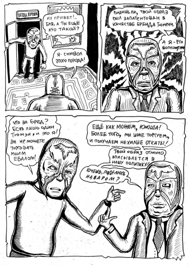– Большинство видят в этом только удачные заголовки, которые помогут им собрать просмотры: «Тюменский супергерой то…», «Тюменский супергерой се…». Смешно наблюдать, как журналисты время от времени раздувают хайп вокруг Тюмэна, но не понимают, что там внутри — например, на одном из разворотов второго тома Тюмэн отсасывает сам у себя.