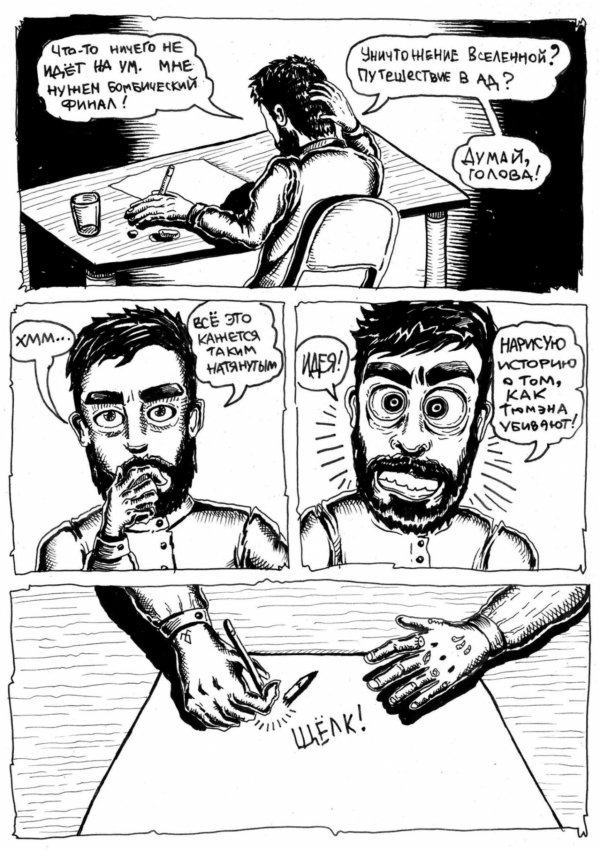 – Я напечатал небольшой тираж своих книжек и отправился в свое первое комикс-турне: Москва, Тула, Томск и Омск. Хотя я поехал чисто на риске и потерял много денег, было весело. Я увидел, что многим людям интересен комикс не просто как гик-развлечение, а как основа для движа, цемент, который скрепляет комьюнити в маленьких городах, помогает развиваться, не тухнуть.
