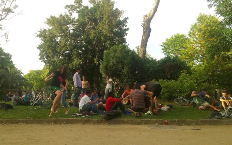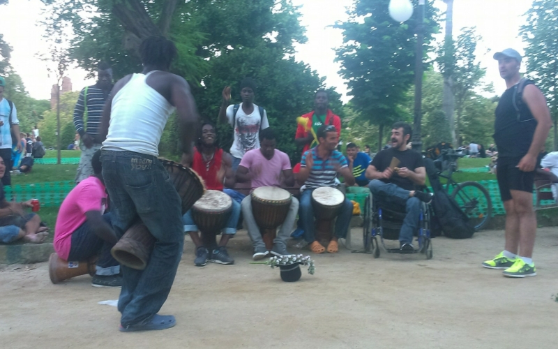 В конце концов я вновь попал в парк Сьютаделья. Накануне я был тут поздно вечером, и мало что разглядел. Теперь, при дневном свете, он меня поразил своей райской атмосферой – невероятно помпезный фонтан Каскада, весь в зелени, пруды с птицами и черепашками, уютные аллеи под тенью мохнатых пальм. Где-то поодаль я услышал ритмичные глухие перестуки барабанов и пошел на них. Когда дошел, понял, что попал по адресу. На одной из лавок на аллее пятеро негров лупили в здоровые там-тамы. Пара испанцев подыгрывала им на перкуссии. В радиусе 30 метров от них газоны были заполнены оттягивающимся народом – десятки парней, девушек, мужчин, женщин и детей, черных и белых, валялись на травке, играли на гитарах, смеялись, пели и танцевали. Повсюду отчетливо пахло ганджубасом. Какие-то проходимцы с сумками продавали отдыхающим пиво «Эстрелла» – по одному евро за маленькую банку. И снова в голове мысли: черт возьми, вот ведь как можно жить! Похоже, что опять, уже в который раз за неделю, я оказался там, где всегда хотел оказаться. И, разумеется, через 10 минут я встретил Чарли.