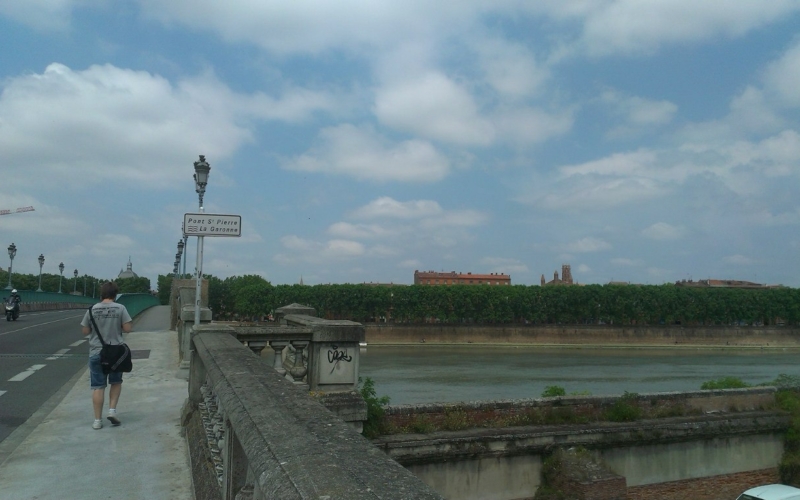 Еще через час я набрел на какой-то городок. Перекусил в «Макдональдсе», в три глотка выпил пол-литра фанты, и вскоре меня подобрала молодая пара – до Перпиньяна, французского городка у моря. Именно там дорога сворачивает к Тулузе. Ну наконец-то! Граница с Францией была отмечена лишь большим щитом с еэсовскими звездочками и надписью Franca/France. И никаких тебе пунктов таможенного контроля – Евросоюз! Пейзаж сменился – вместо иссохших испанских полей за окном выросли монументальные горы, поросшие зеленым лесом. Мы пересекли Пиренейский хребет. Дело шло к вечеру, я беспокоился, что не успею до ночи добраться к Алехандро (моему хосту с каучерфинга). Под Перпиньяном я снова завис на час с лишним. Когда начало смеркаться, я стал прикидывать, где бы тут поставить палатку. Но все же застопил машину до Тулузы. За пару часов сумерки плавно перетекли в теплую ночь, и уже в темноте мы въехали в Тулузу, столицу региона Пиренеи – Юг и один из древнейших галльских городов.